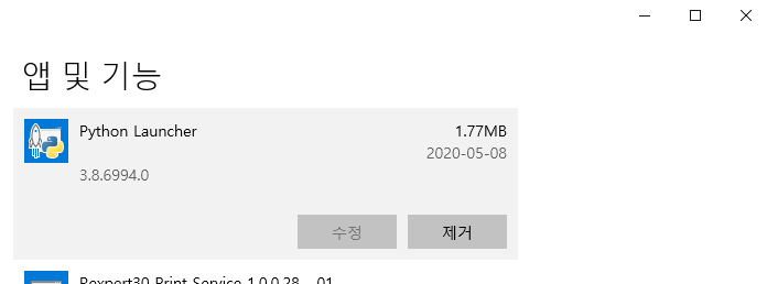 리스트에서 설치된 파이썬 프로그램 App을 찾아서 제거 버튼을 클릭합니다.