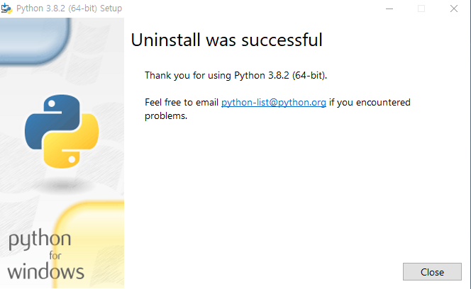 삭제가 진행되며 삭제가 완료되면 파이썬 관련 파일이 모두 삭제가 되었습니다.