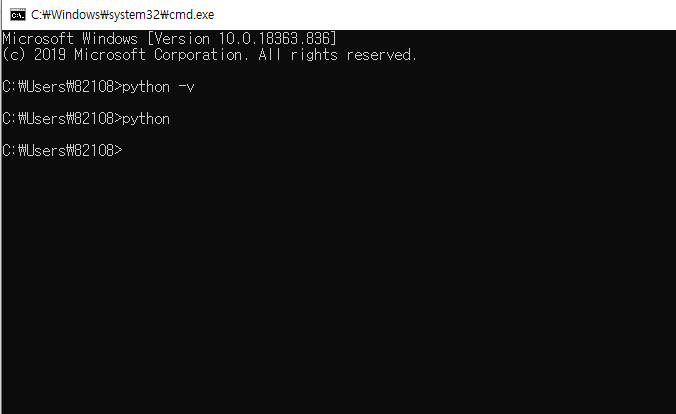 파이썬이 정상적으로 삭제가 되었는지 파이썬버전 체크를 확인해봅니다.