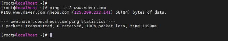 www.naver.com인 경우는 ping을 차단되어 있는 상태라 결과를 받지 못하고 상태가 종료되었습니다.