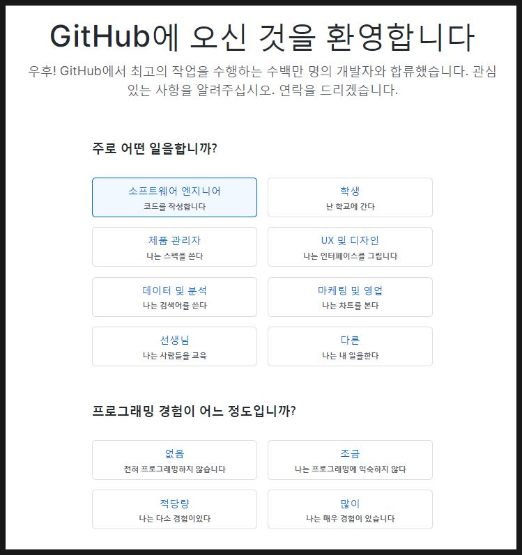 3. 계정 유형인 무료(Free) 와 유료(Pro) 중 선택하고 간단한 설문에 응답을 하게 되면 회원가입이 완료됩니다.