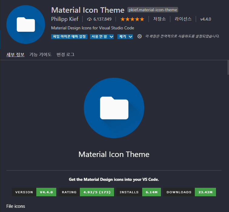Material Icon Theme 플러그인은 Visual Studio Code 내에서 사용되는 프로그래밍 파일의 아이콘을 보기 좋게 해주는 플러그인입니다.