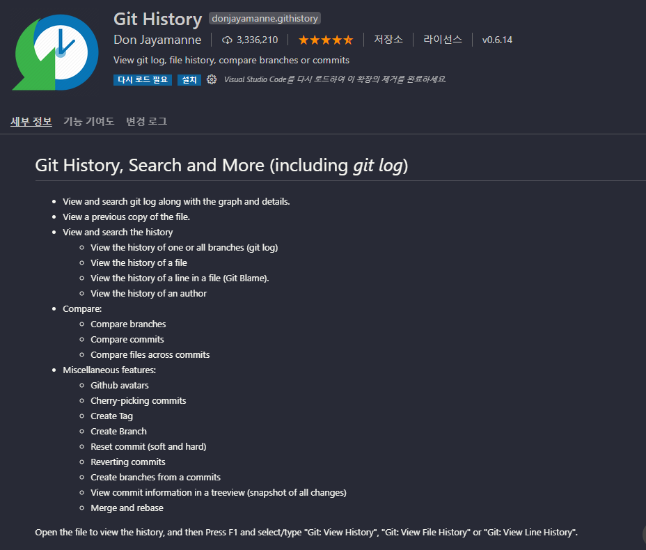 Git Histhory 플러그인은 Git 기록을 확인가능한 플러그인으로써 Git history를 확인이 가능합니다. 비슷한 플러그인으로는 Git Graph 플러그인이 있습니다.