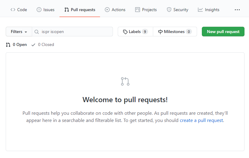 Pull Request 페이지의 [New pull request] 버튼을 클릭하게 되면