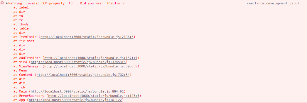[React] Invalid DOM property `for`. Did you mean `htmlFor`에러 본문